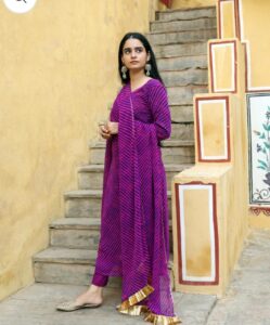 A stunning lahariya 🌸 print kurti crafted from 100% pure Afghani cotton, offering unmatched comfort and breathability. The vibrant print blends tradition with elegance, making it a perfect choice for both casual and festive occasions.