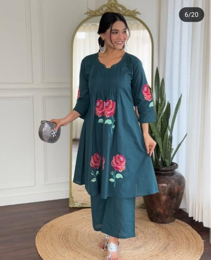 Experience the charm of timeless artistry with our Special Embroidery Aari Work Cord-Set. Crafted from premium cotton 60*60 fabric, this elegant 2-piece set features intricate aari embroidery on both the front and back, adding richness and sophistication to your look. Designed for comfort and style, it’s perfect for festive occasions, casual gatherings, or elegant daywear.