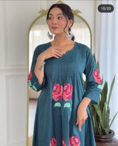 A stunning lahariya 🌸 print kurti crafted from 100% pure Afghani cotton, offering unmatched comfort and breathability. The vibrant print blends tradition with elegance, making it a perfect choice for both casual and festive occasions.