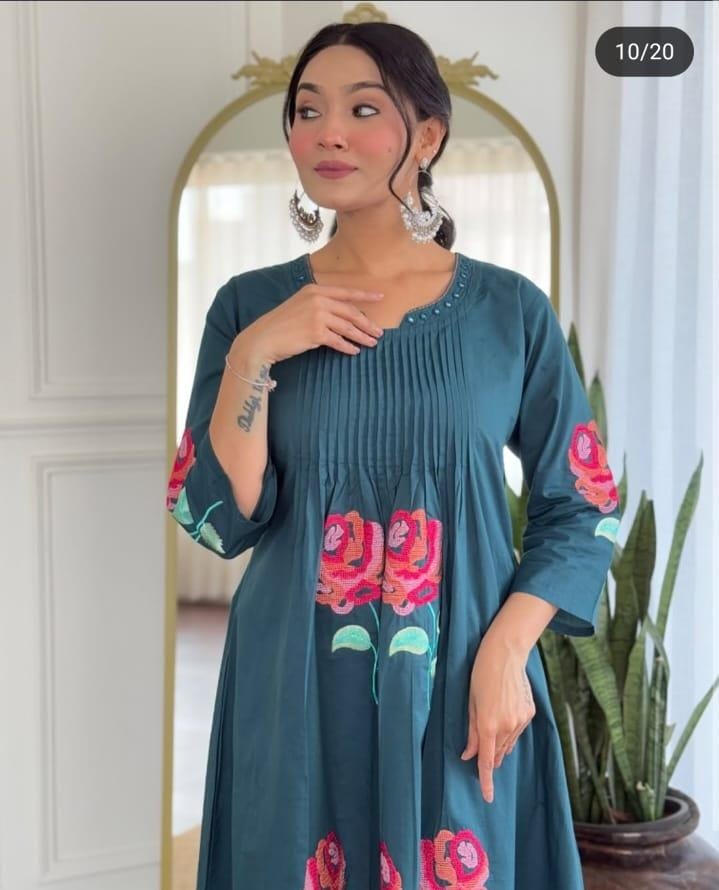 Elevate your ethnic wardrobe with this Embroidery Aari Work Special Cord-Set. Designed in premium cotton 60*60 fabric, this 2-piece set is adorned with exquisite aari embroidery on both front and back, offering a blend of tradition and modern elegance. Perfect for festive gatherings, casual outings, or statement everyday wear, it ensures both comfort and sophistication.