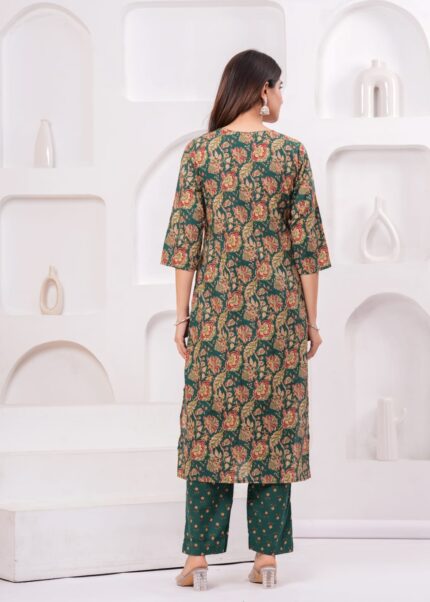 The set is thoughtfully paired with comfortable cotton pants and a lightweight cotton dupatta, making it a perfect blend of tradition and comfort.