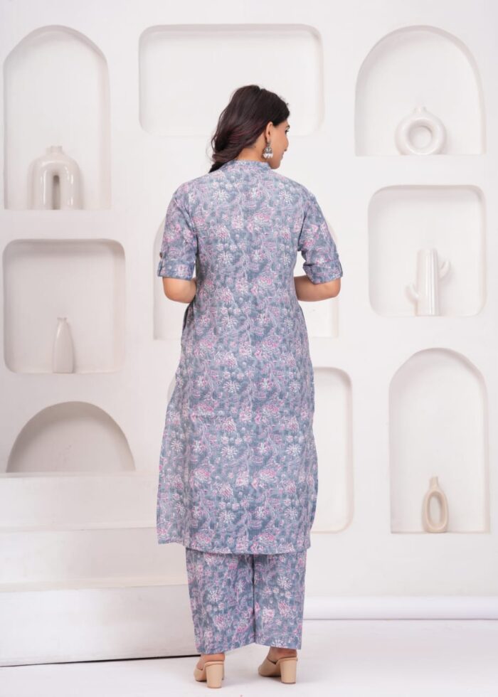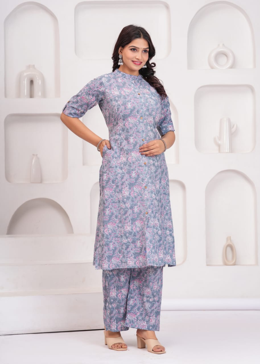 Elevate your everyday look with our beautiful cotton cord set in a chic belt style. Crafted from premium 60*60 cotton fabric, this set combines comfort with elegance. The kurta is designed for effortless grace, while the pants come with practical pockets for added functionality. Available in 4 stunning prints, this versatile outfit is perfect for both casual outings and festive gatherings. with 2 colour
