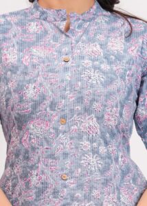 A stunning lahariya 🌸 print kurti crafted from 100% pure Afghani cotton, offering unmatched comfort and breathability. The vibrant print blends tradition with elegance, making it a perfect choice for both casual and festive occasions.