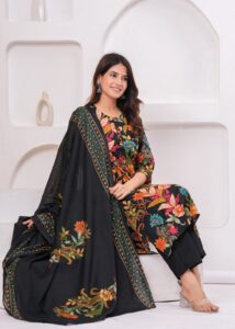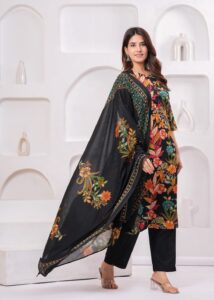 The set is thoughtfully paired with comfortable cotton pants and a lightweight cotton dupatta, making it a perfect blend of tradition and comfort.
