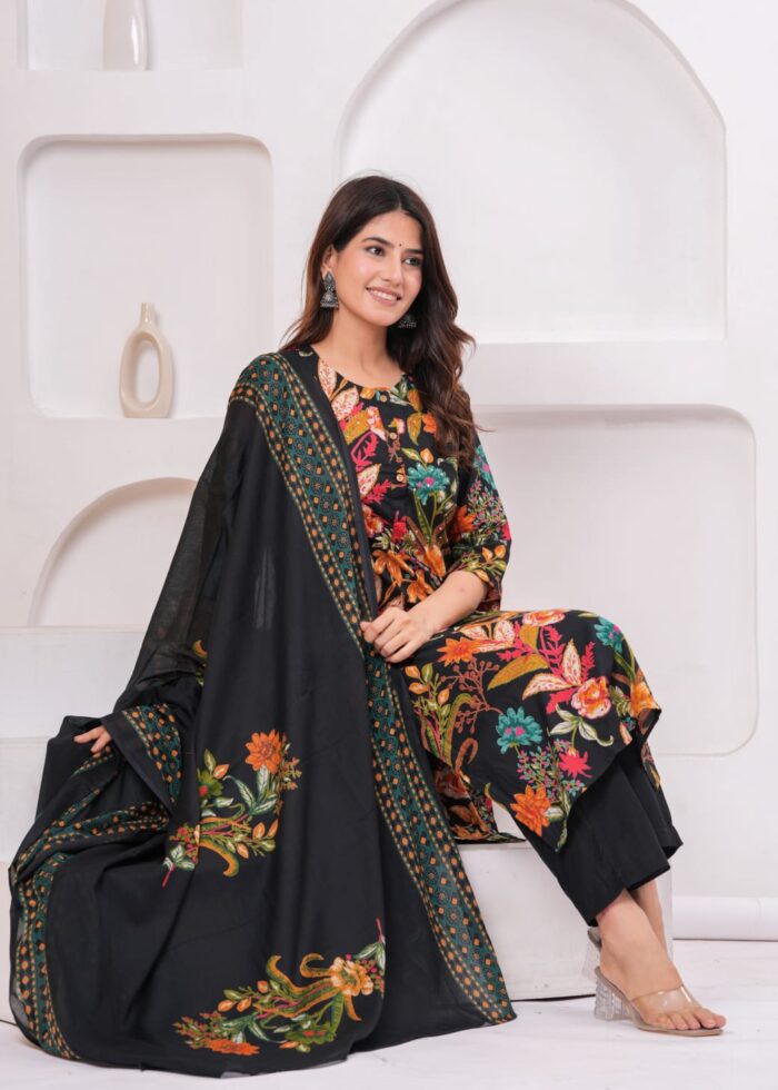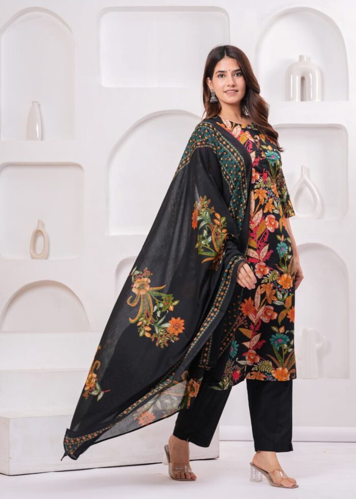 Add charm to your wardrobe with this beautiful cotton straight suit, crafted from premium quality fabric and adorned with an eye-catching print. Lightweight, breathable, and effortlessly stylish, this suit is perfect for everyday wear as well as casual outings, ensuring comfort with a touch of elegance.